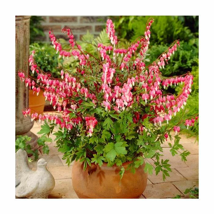 Flowering from late spring through to early summer, Dicentra spectabilis will form a mound of beautiful green foliage, that will bear stunning heart-shaped blooms. These flowers are pink and white in colour, and will gracefully hang from their arching stems.
