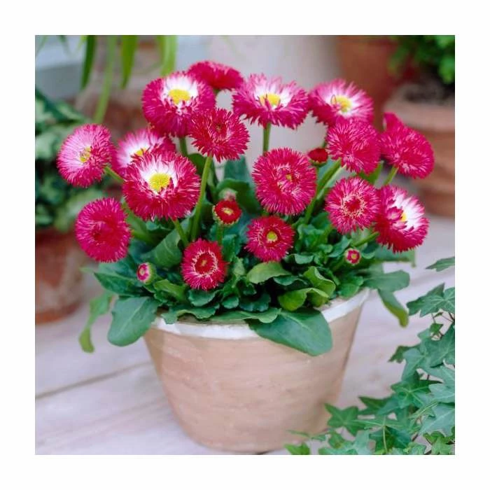 Flowering all the way from spring to summer, Bellis plants make wonderful additions to both traditional borders and hanging baskets. Available in a mix of colours, their solitary, daisy-like blooms will always prove a cheerful yet subtle touch to your garden. Aside from bringing long-lasting floral interest, their emerald, ovate-shaped leaves are evergreen, making this plant excellent for keeping your garden vibrant all year round. Very hardy and mat-forming, this Bellis plant does not require much care other than to remove any spent flowers.